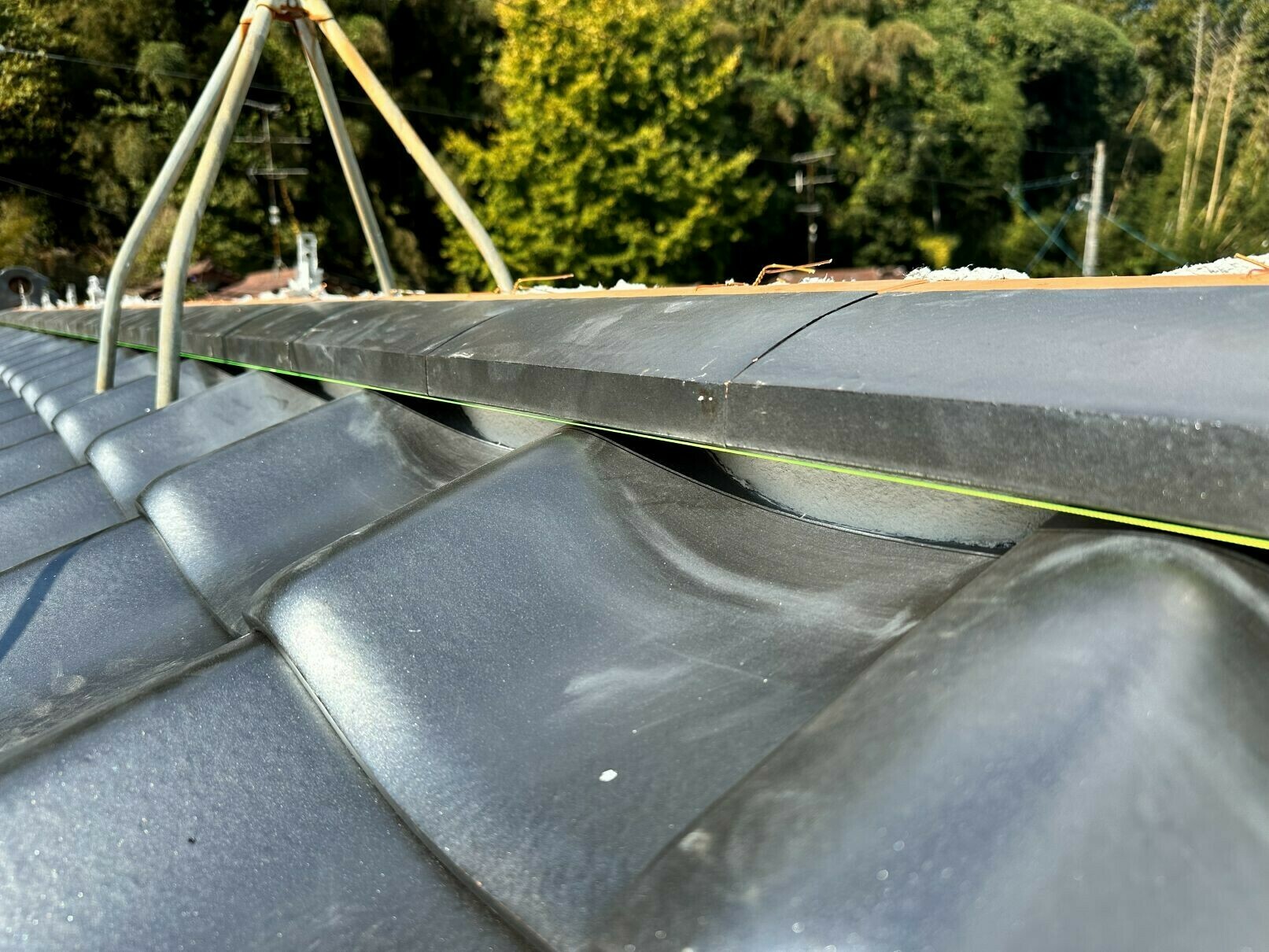隅棟も同じように施工しますが、隅棟は反らしを入れます👍
