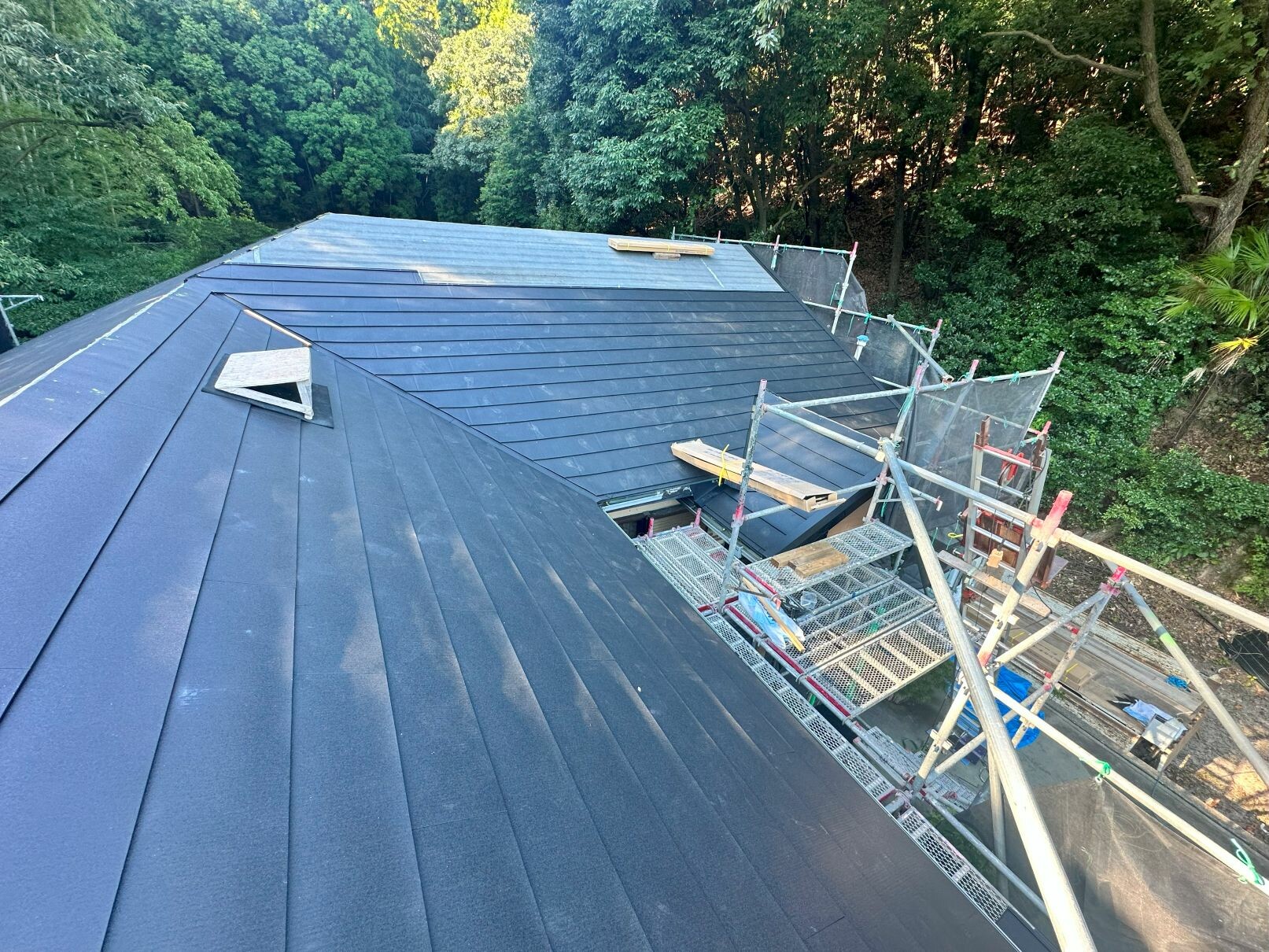 旧屋根材(カラーベスト)の劣化により塗装不可のため、カバー工法にて葺き替え工事