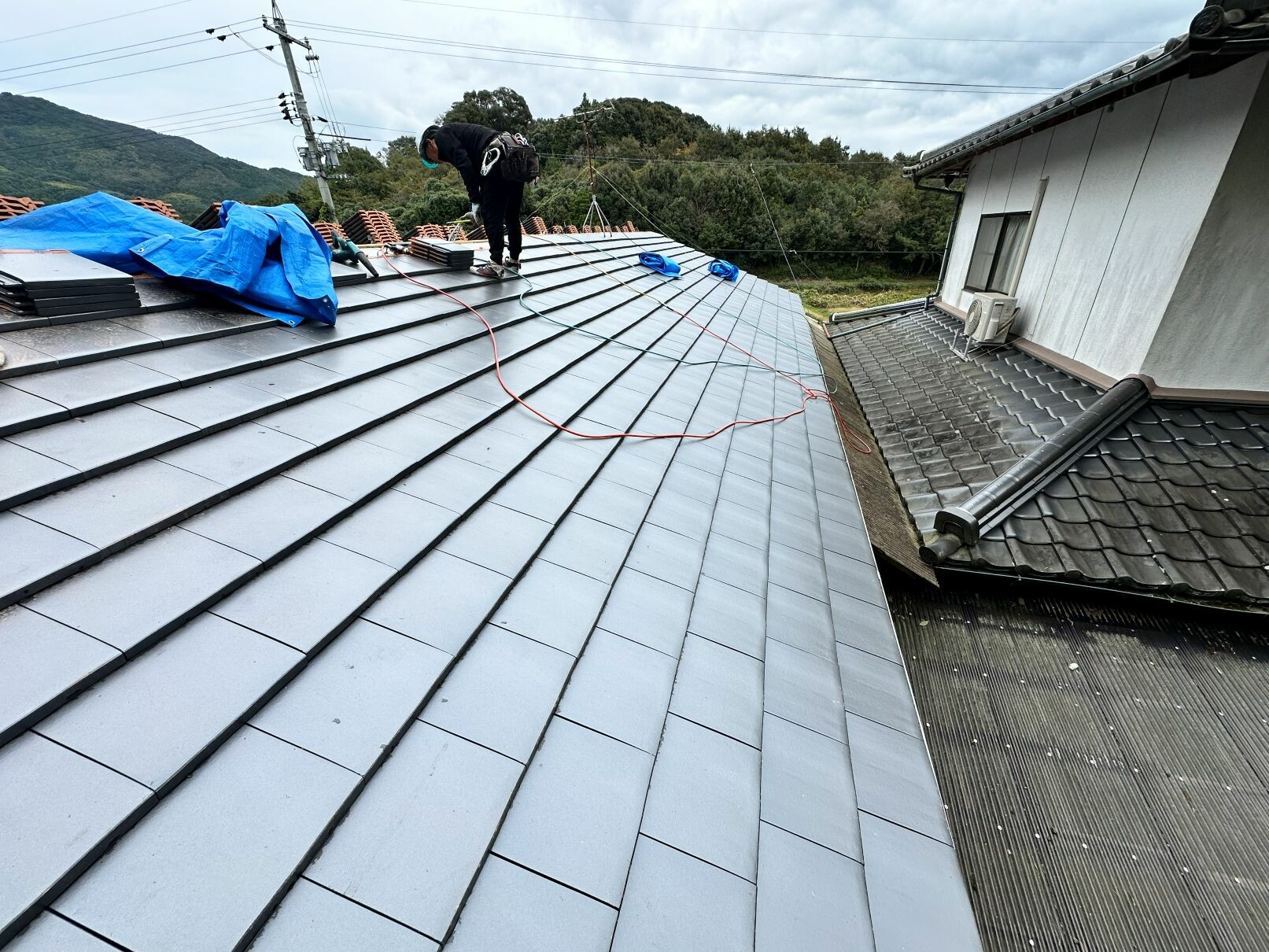 屋根瓦葺き替え工事 三州平板瓦 柳井市